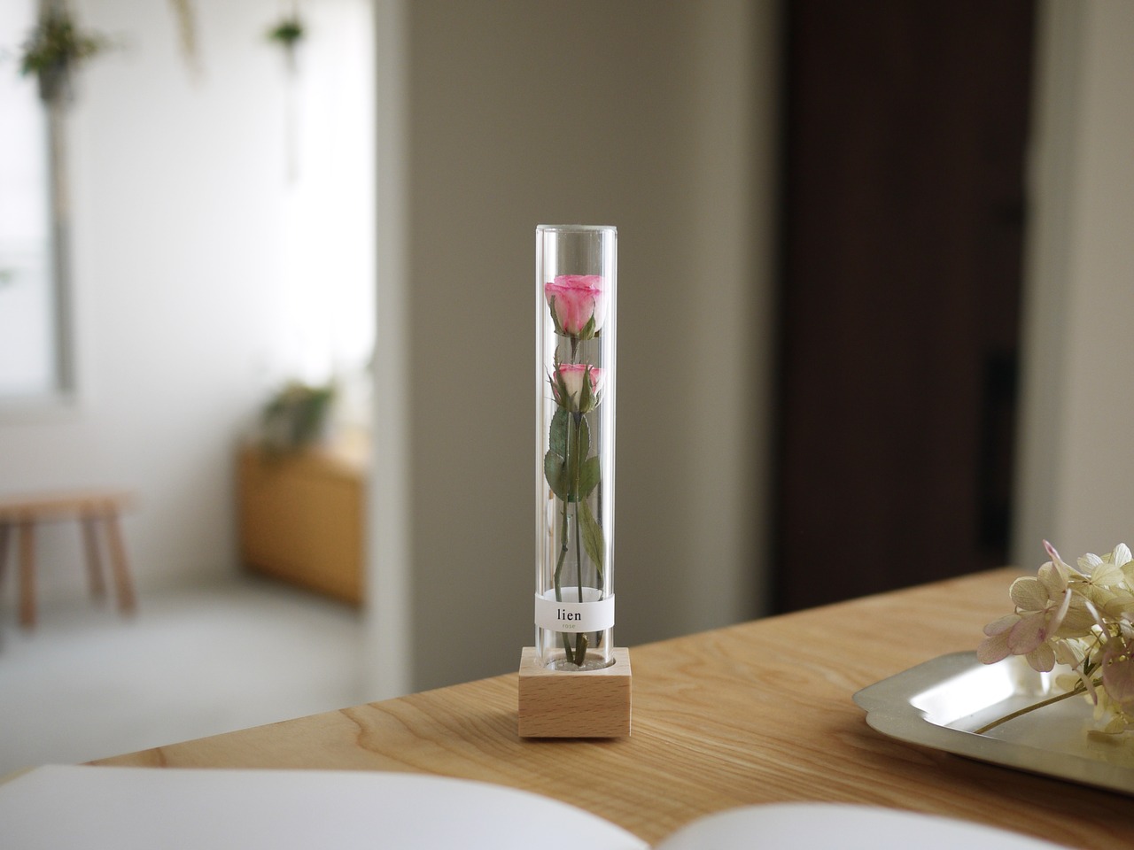野に咲く草花をドライ加工し、自然の美しさそのままをガラス管に閉じ込めたボトルフラワー「lien(リアン)」です。