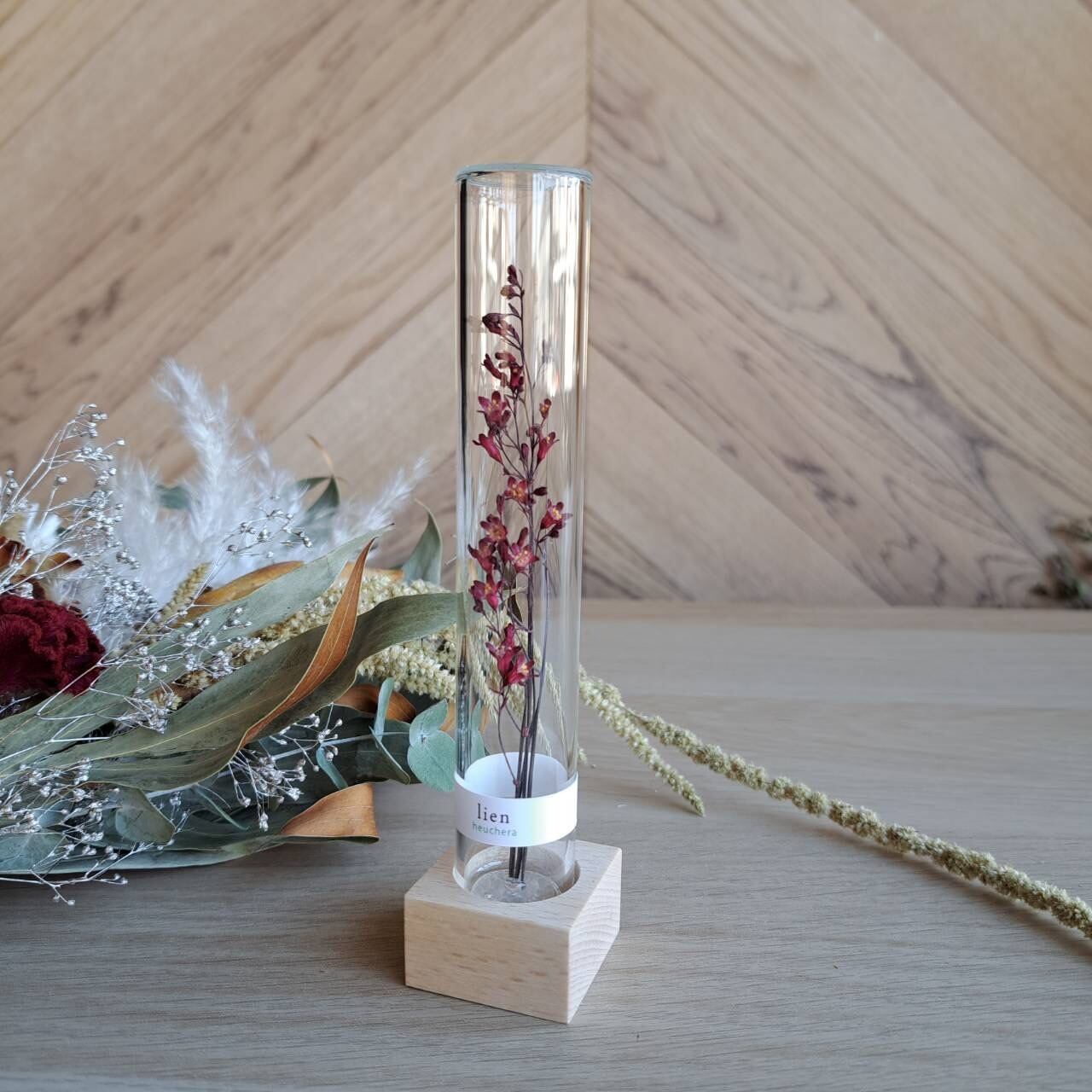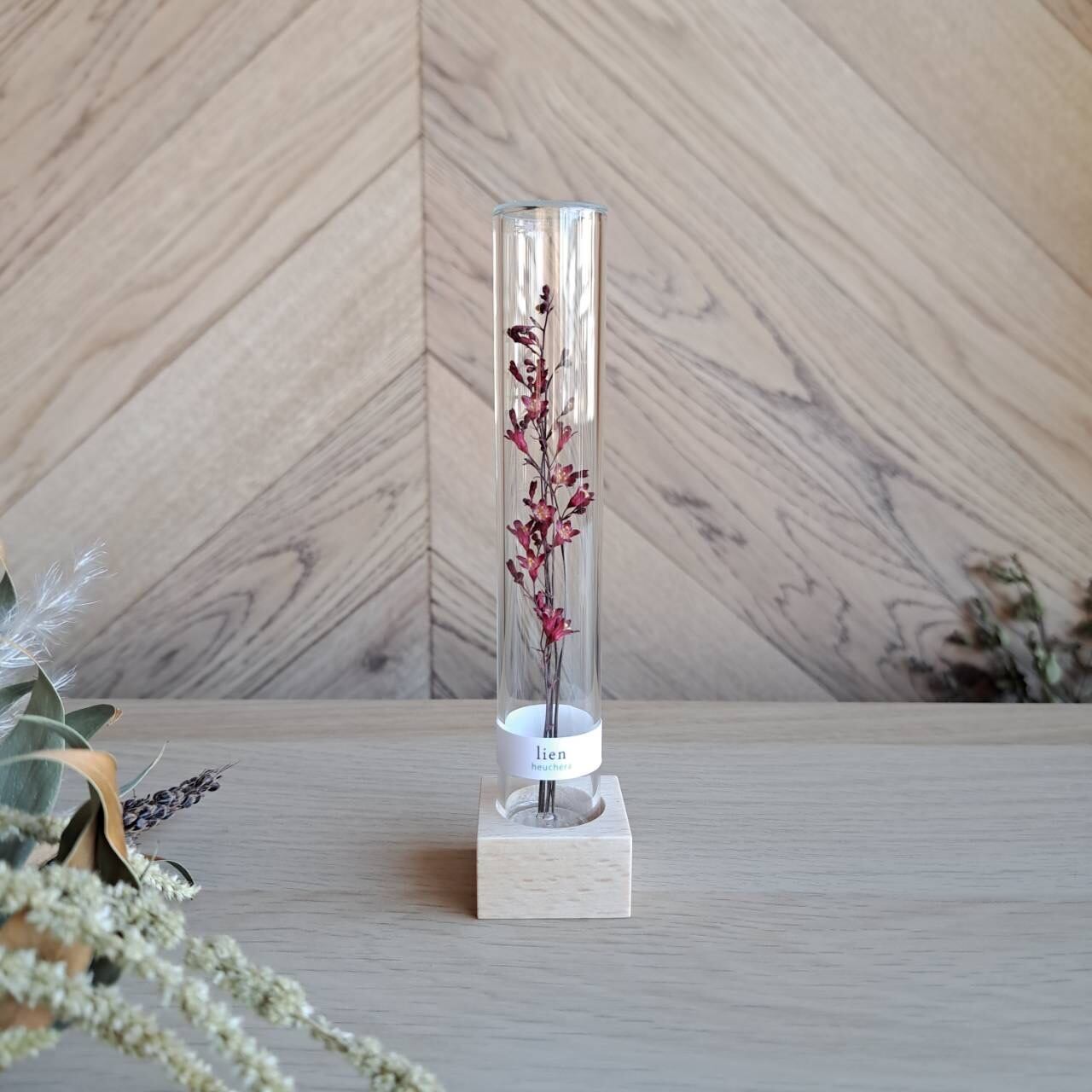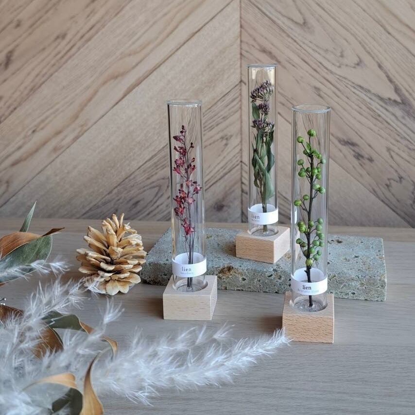 野に咲く草花をドライ加工し、自然の美しさそのままをガラス管に閉じ込めたボトルフラワー「lien(リアン)」です。
